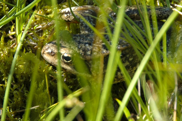 ...und unser Wetterfrosch Quaxi versucht vergeblich im Gras unterzutauchen! Ohne Erfolg, sorry ;-)