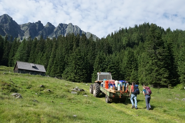 Lieferungen werden mit dem Traktor ins Triebental gebracht