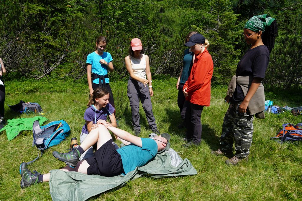 Weiter oben am Königinnensee stellt Helene knifflige Fragen zu Verhalten am Berg.