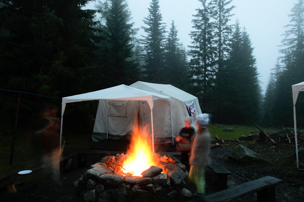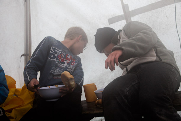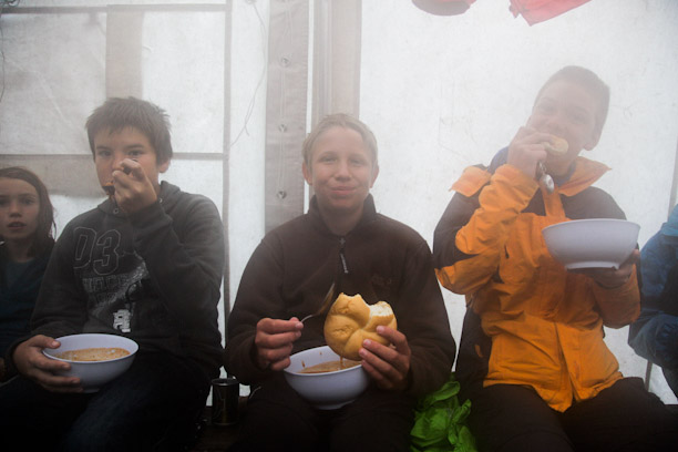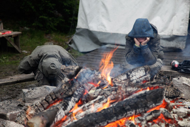 Endlich daheim, wird das Lager fast weggespült