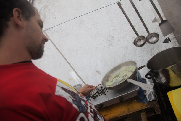 Manu bereitet das Frühstück vor