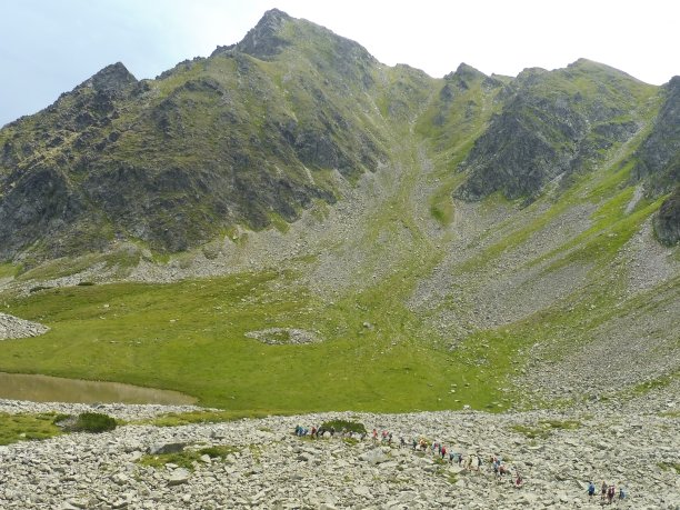 ... während sich die Karawane vom Hirschensee hinaufschlängelt.