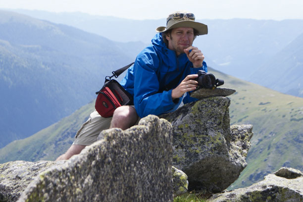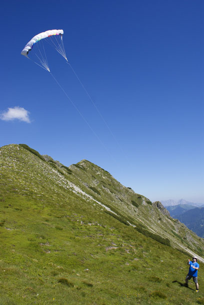 Oben auf der Pumuckelscharte probierte unser Chef dann auch sein neues Spielzeug aus...