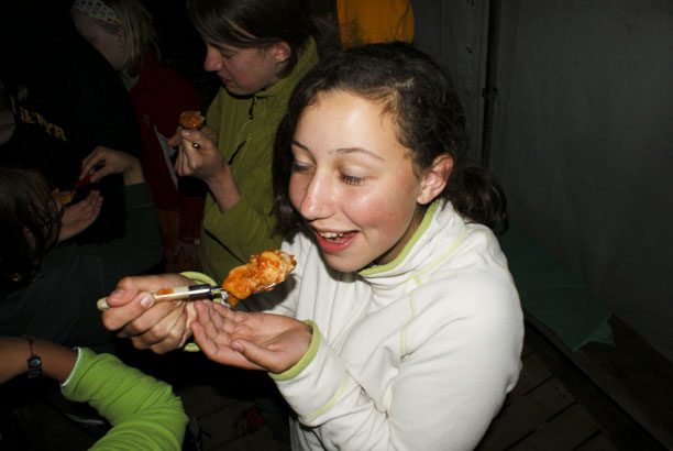 ... und anschließend am Lagerfeuer samt Gitarrenbegleitung köstliche Braunschweigerstückchen gegrillt!