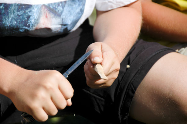 Zum eigenständigen Grillen wurden dann auch wieder passende Spieße geschnitzt...