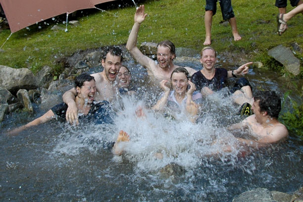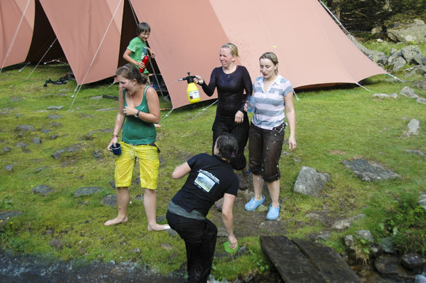 Für Abkühlung war auch bei einer zünftigen Wasserschlacht gesorgt...