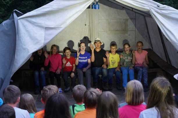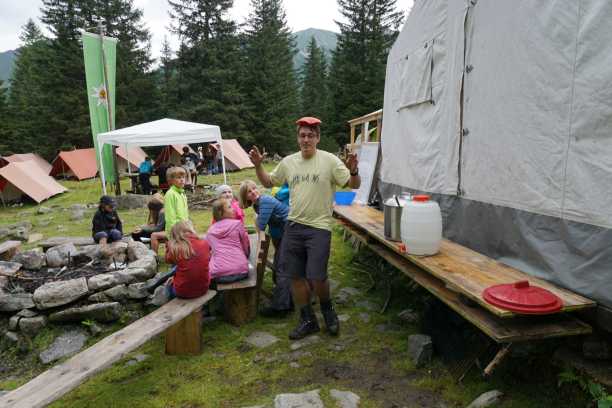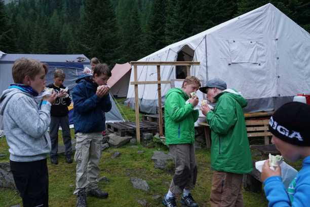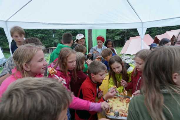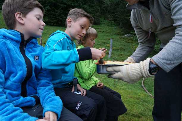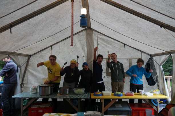 Die Betreuer sind bereit um das Abendessen zu servieren.