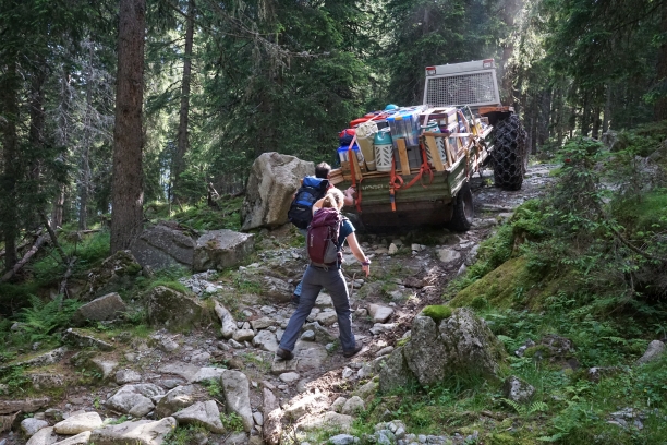 Lieferungen werden mit dem Traktor ins Triebental gebracht