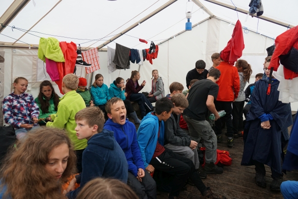 Und wenn es regnet gehen wir einfach ins Gemeinschaftszelt