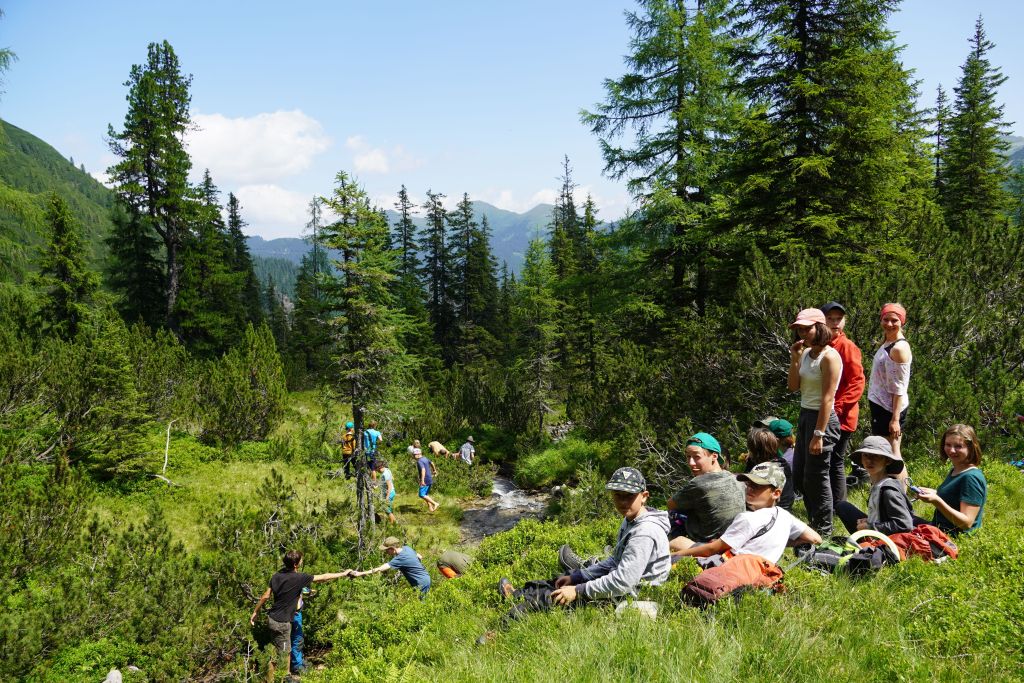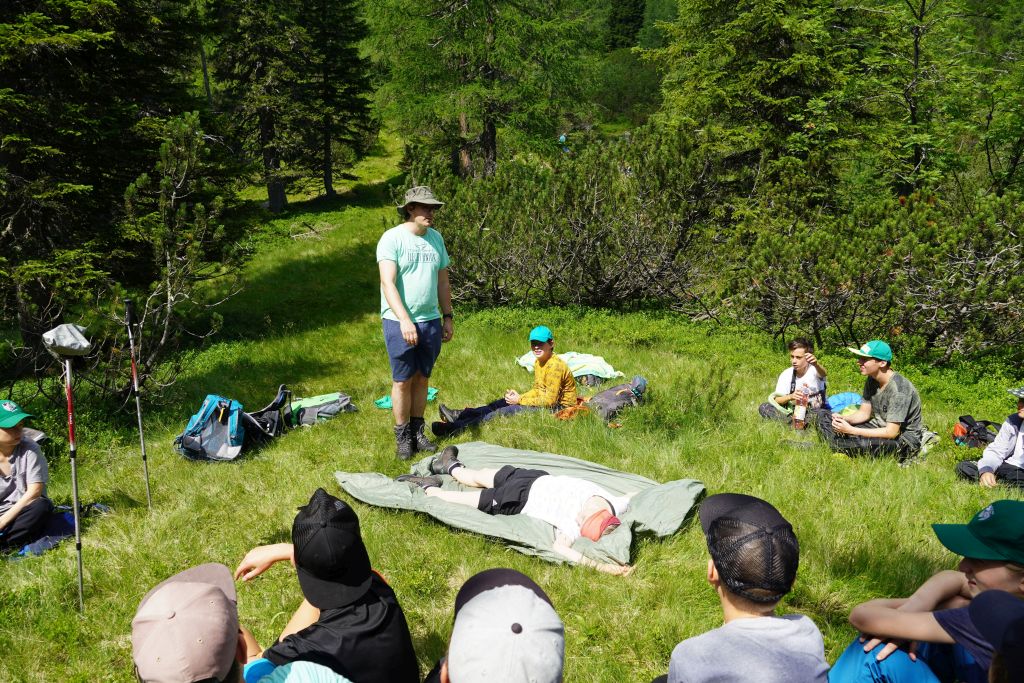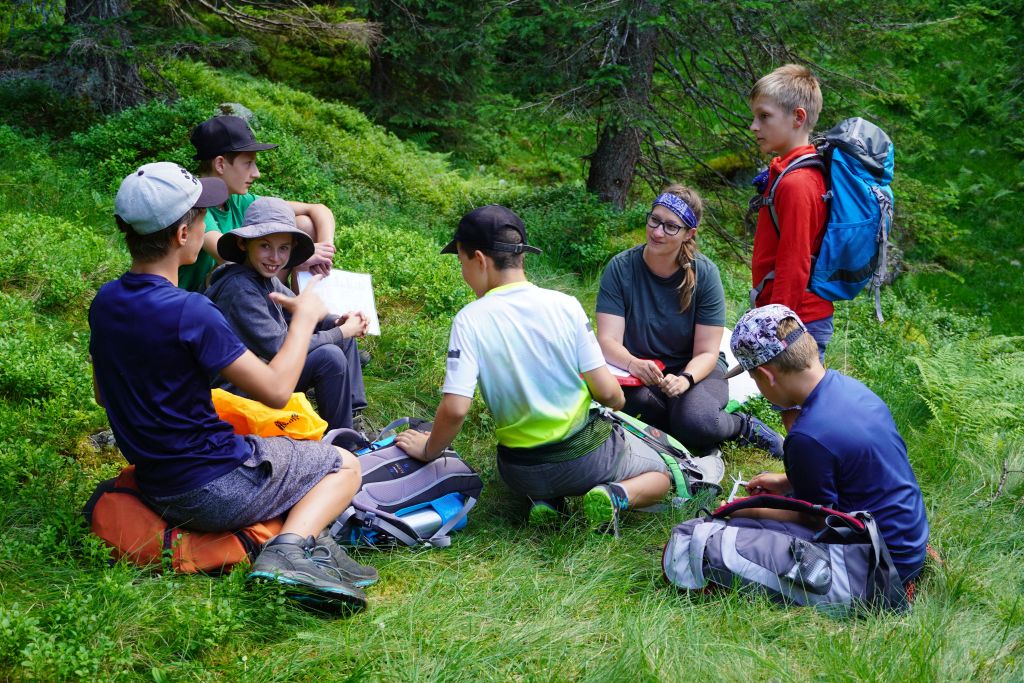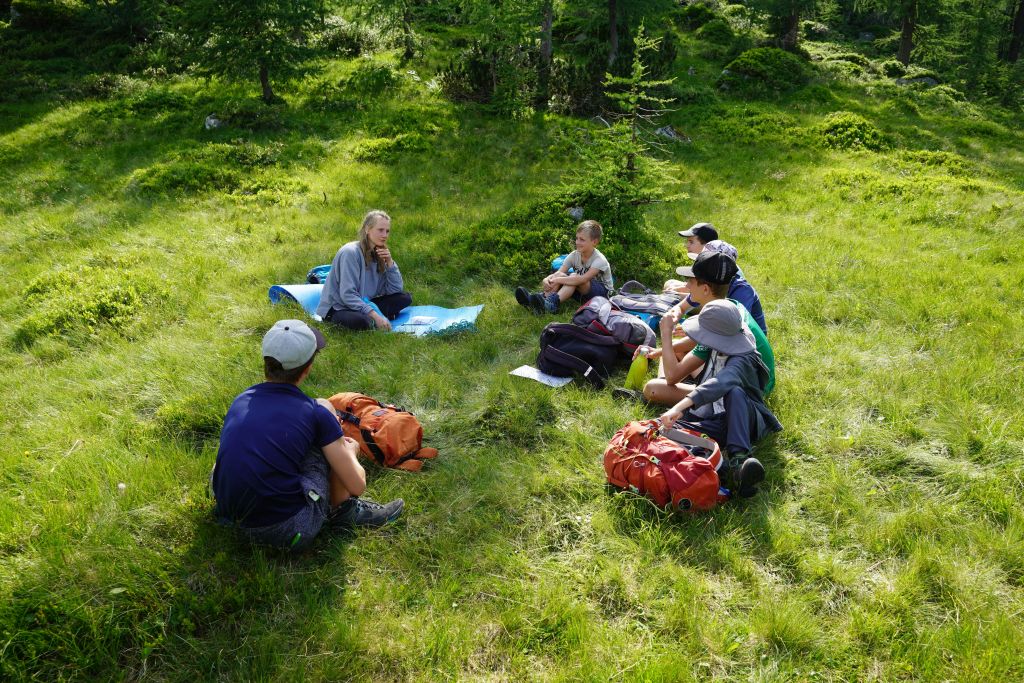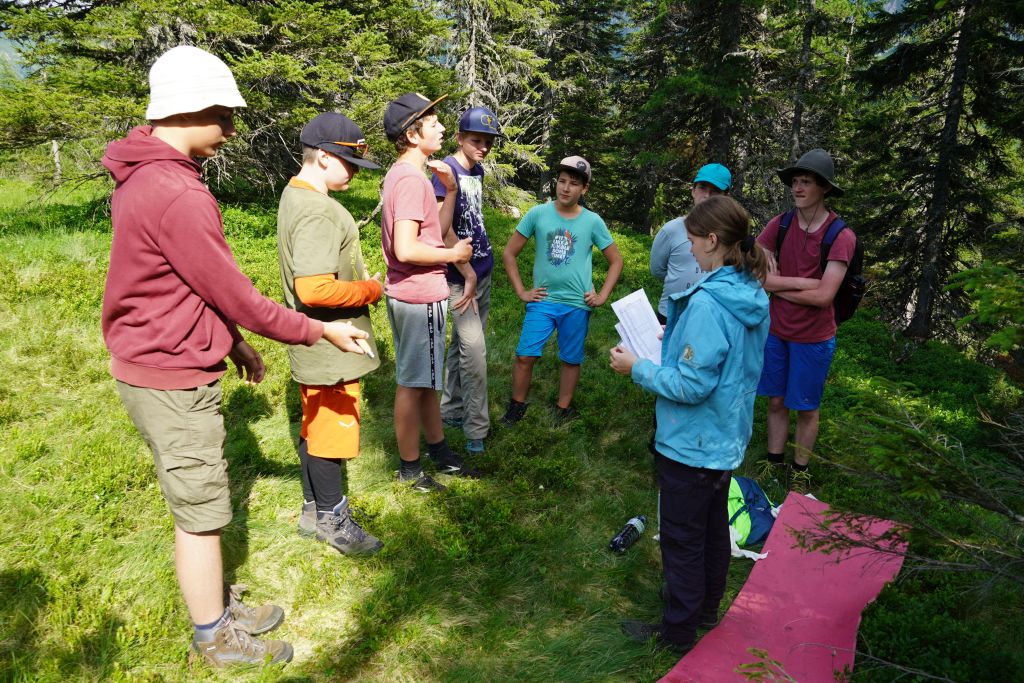 Weiter oben am Königinnensee stellt Helene knifflige Fragen zu Verhalten am Berg.