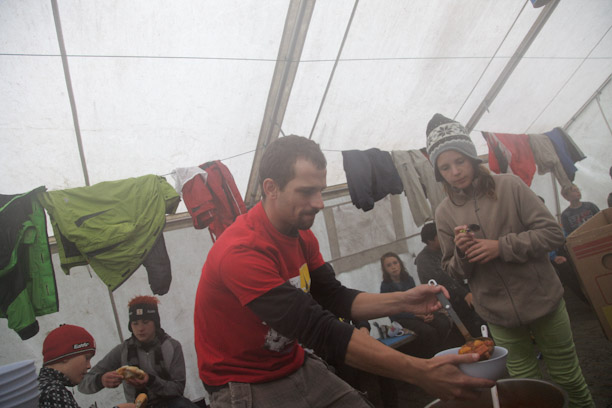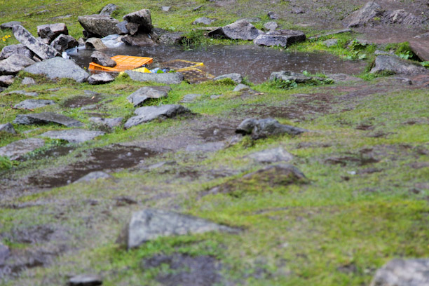 Endlich daheim, wird das Lager fast weggespült