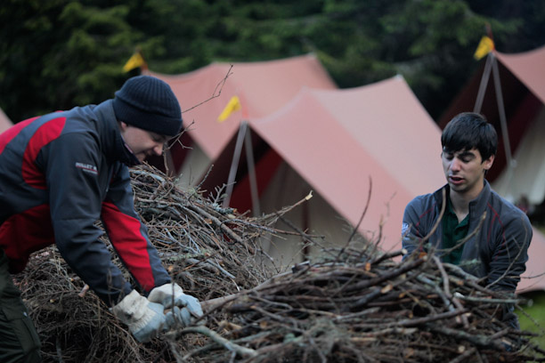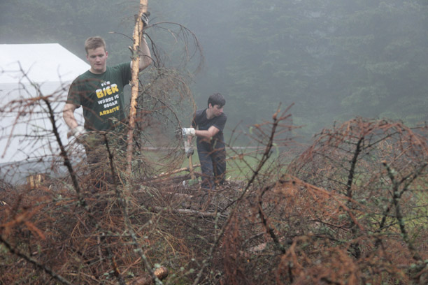 Die YoungStars Lacki und Julian kümmern sich ums Feuerholz