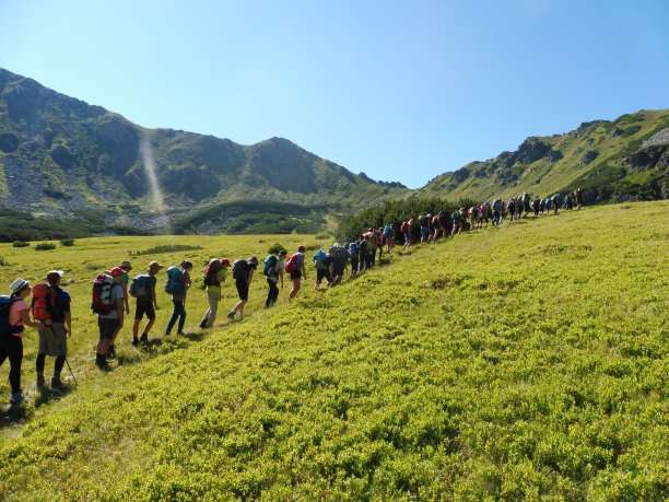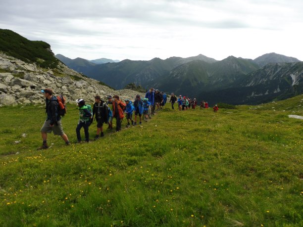 Am Montag visieren wir - im langen Gänsemarsch - den ersten Gipfel an.
